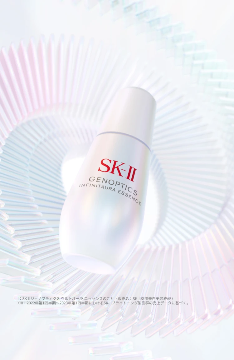 - 2022年第1四半期~2023年第1四半期におけるSK-IIブライトニング製品群の売上データに基づく。