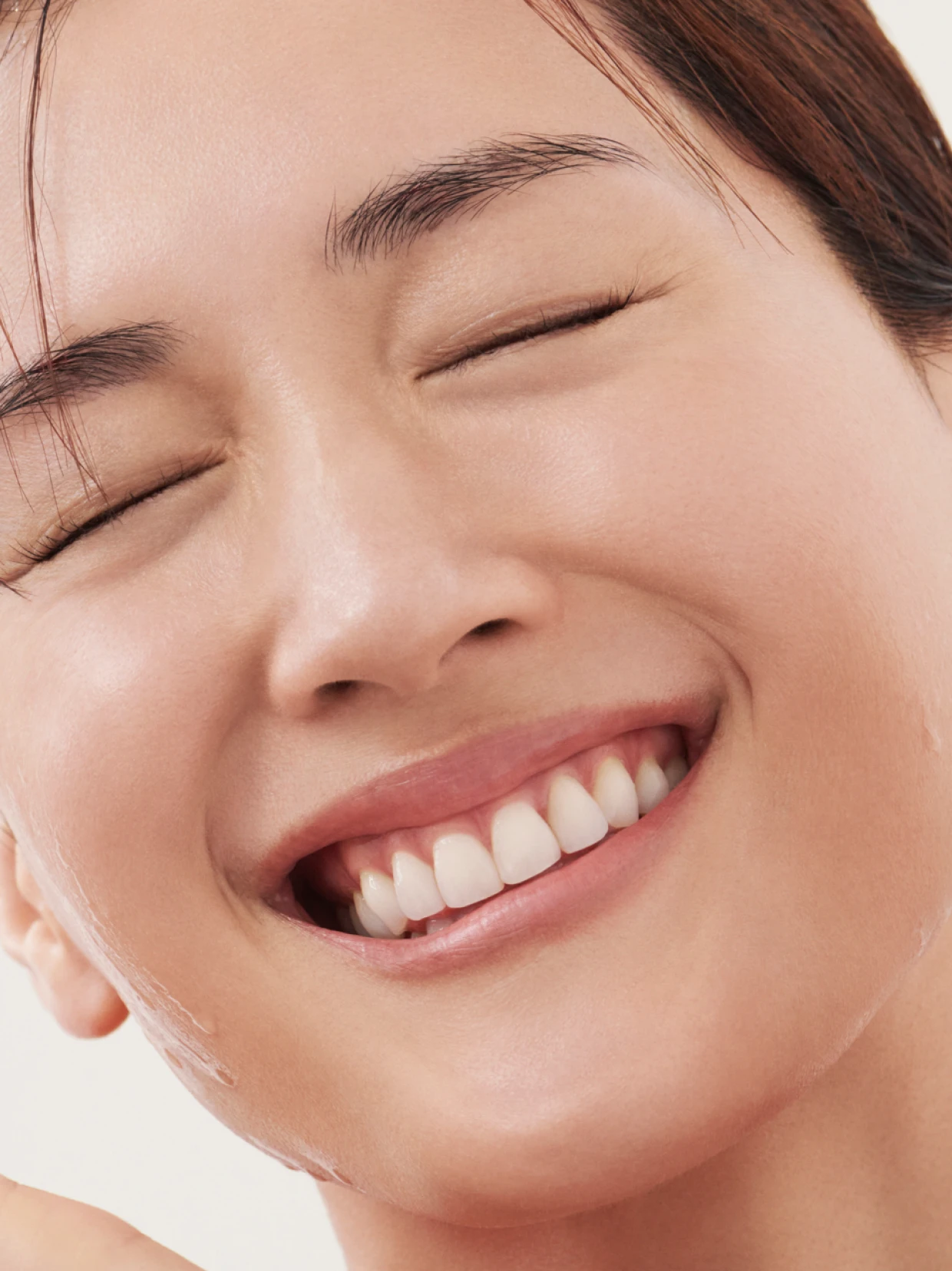 4. 再度、化粧水を適量手に取り、顔全体に伸ばし、小鼻、目のまわり、額、アゴまでていねいになじませます